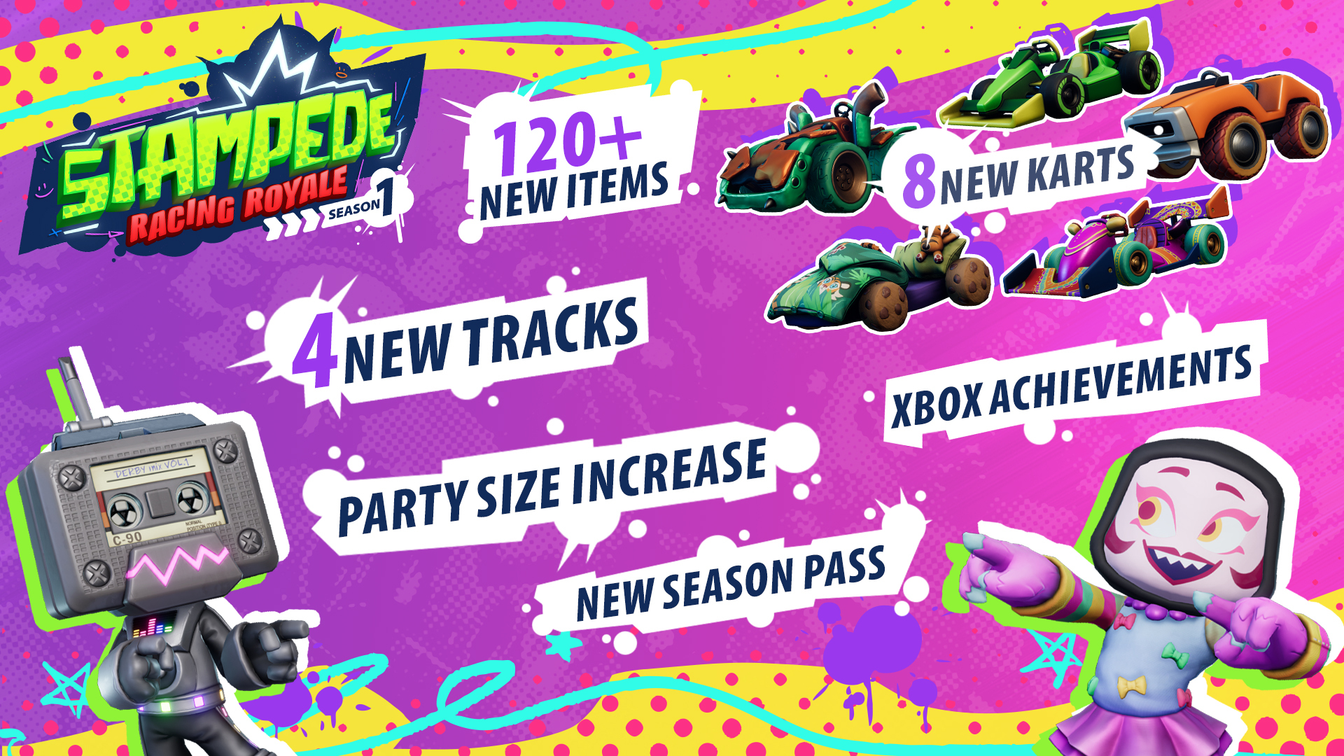 We’ll share even more details in the patch notes for Season 1 of Stampede: Racing Royale when the update goes live on Steam and Xbox on. Follow us on Instagram, X, and YouTube, where we’ll be sharing more previews of what to expect.